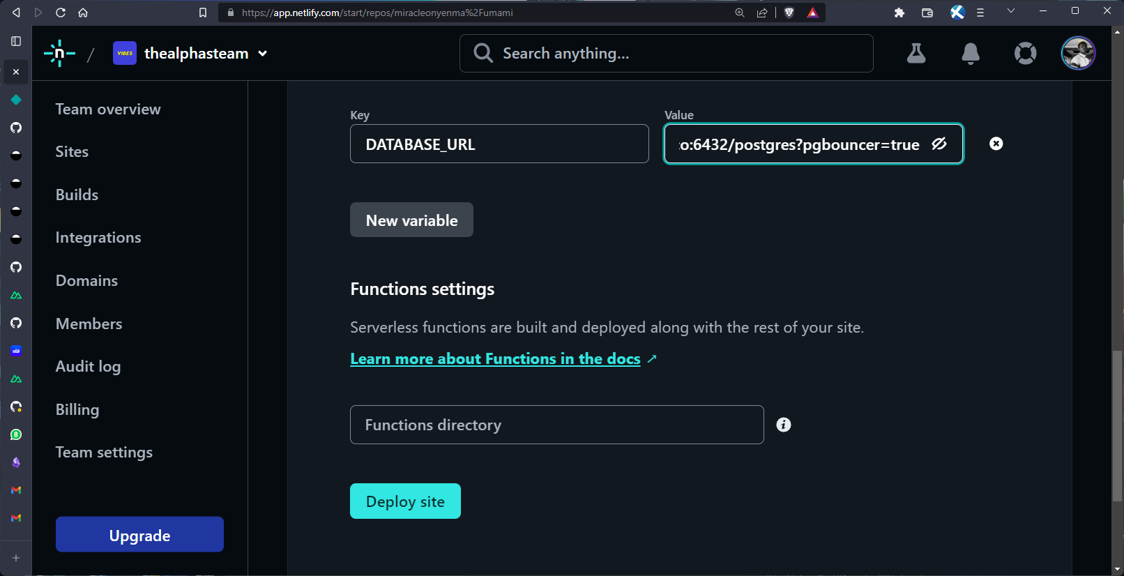 Once that's done, click on Deploy Site.